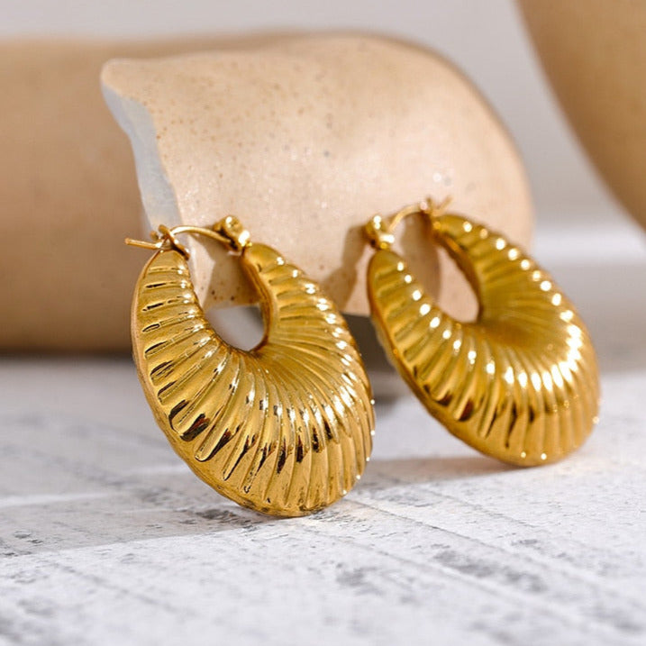 Vintage Look Chunky Hoop Stainless Steel Earrings