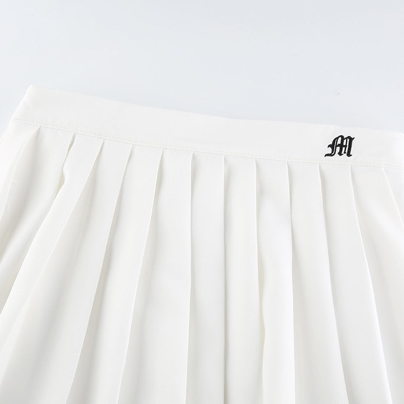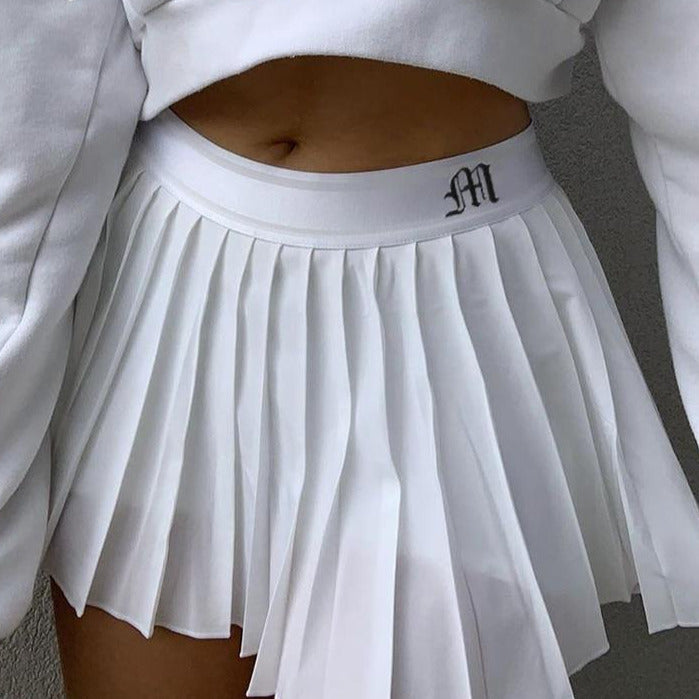 Add some sports vibe to any look with this tennis skirt. Featuring a white material with a contrasting logo and a pleated design.